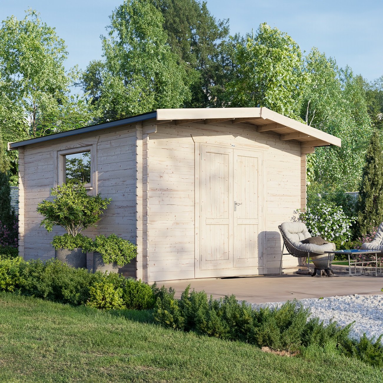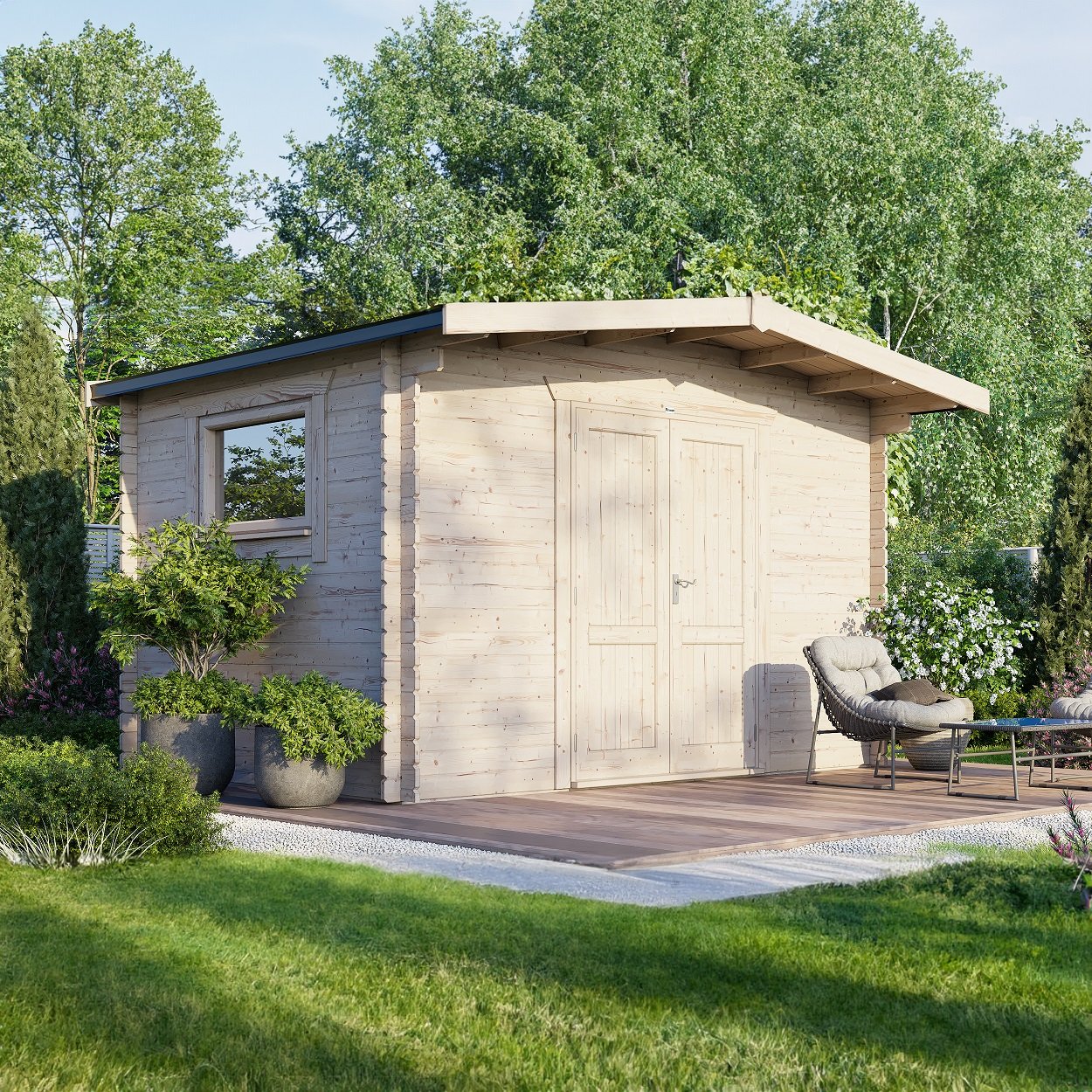 The 28mm thick interlocking logs and EPDM rubber roof mean this is a very solid building that will last many, many years.