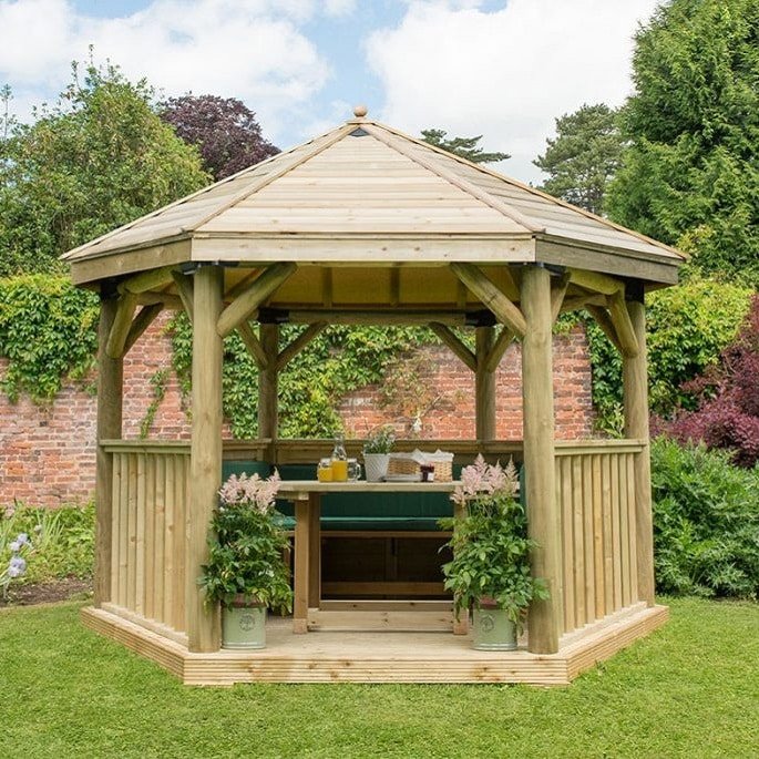 All forest gazebos are made from smooth planed Radiata Pine and are pressure treated with a 15 year anti-rot guarantee.