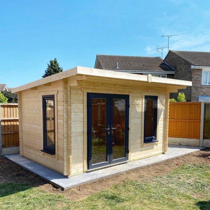 The Power Pent Log Cabin is a very high quality log cabin featuring a single sloping roof for a modern, contemporary look & feel. Anthracite grey Upvc doors & windows add to this aesthetic, while also providing security and a maintenance free element.