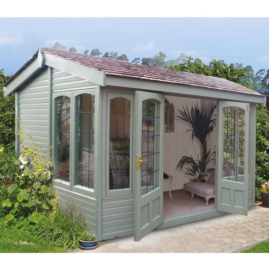 The Astwood summerhouse is a classically designed garden building which has an apex pitched roof, but with the front being under the eaves rather than in the more traditional gable end.