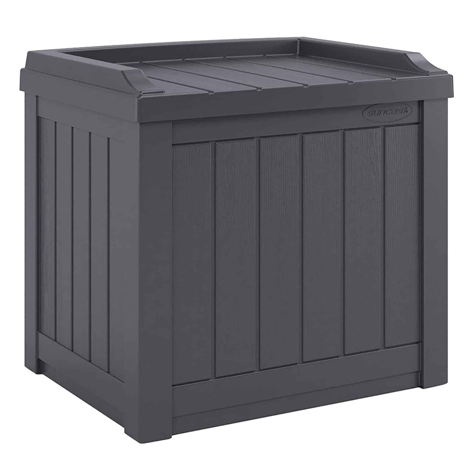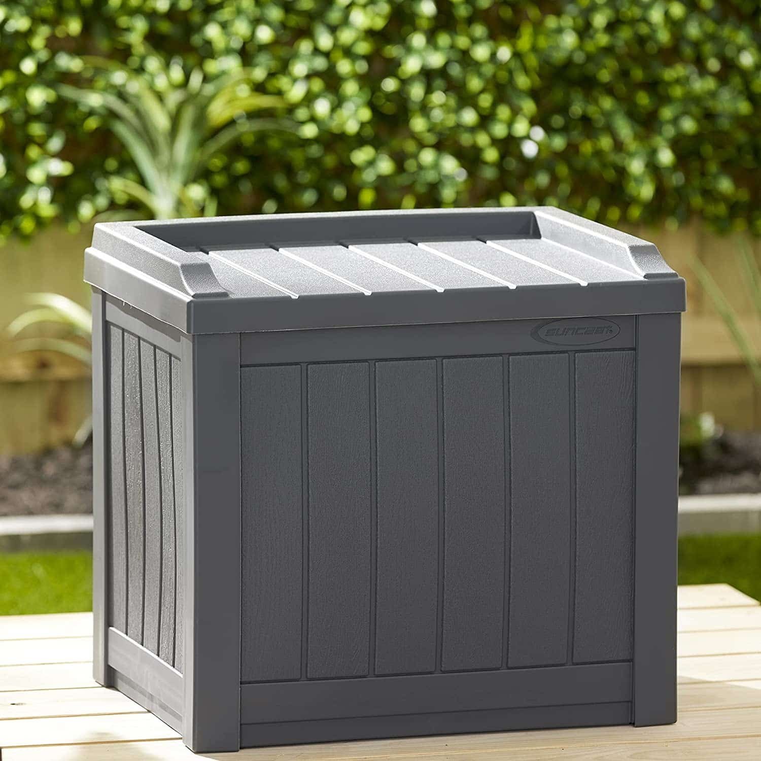 56cm wide x 43cm deep deck box which has an 83L storage capacity under the seat. Fully weather proof and finished in a Cyberspace (Dark Grey) colour.