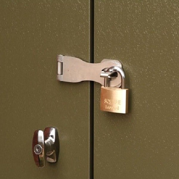 A complete security package which includes a heavy duty ground anchor, 1.5m chain with padlock, stainless steel hasp & padlock for the front doors and a battery operated PIR alarm system.