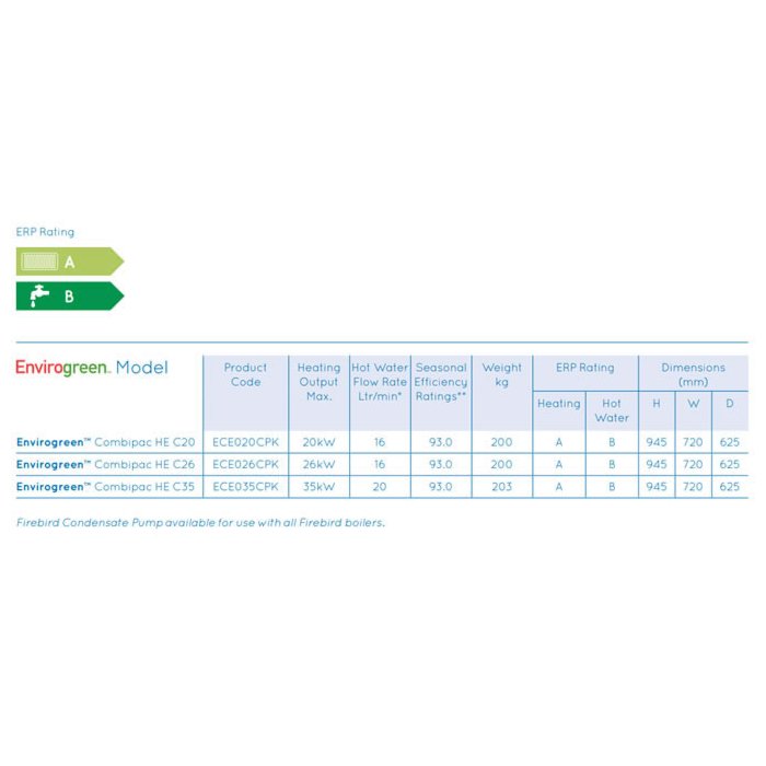 Easy to Install and Maintain: Designed with both plumbers and contractors in mind, the Firebird Envirogreen Combipac allows for straightforward installation and servicing.