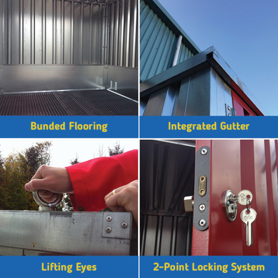 The Storage Container has a built-in ventilation panel which eliminates condensation and provides good air circulation which prevent build up of hazardous fumes. Twin UK Locksmiths Association approved door locks with spare keys included as a standard option.