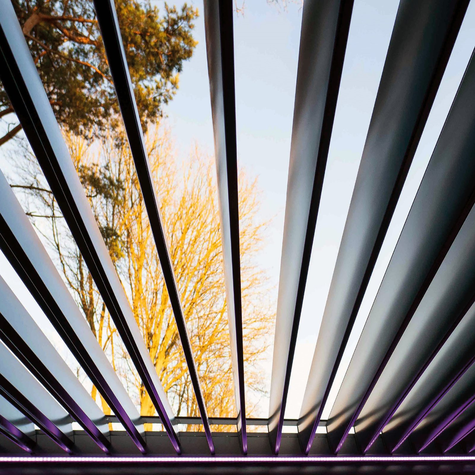 A brilliant built-in drainage system prevents unwanted water build-up on the louvered roof. Any rainwater that lands on the louvres flows into U-shaped channels in the pergola framework, where it flows into the hollow legs and vertically down to the ground. This genius system prevents water from dripping under the sheltered area, keeping you dry even after heavy downpours.