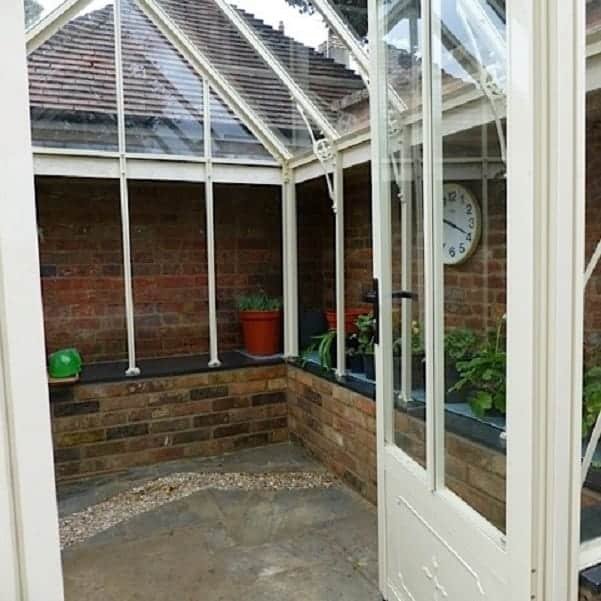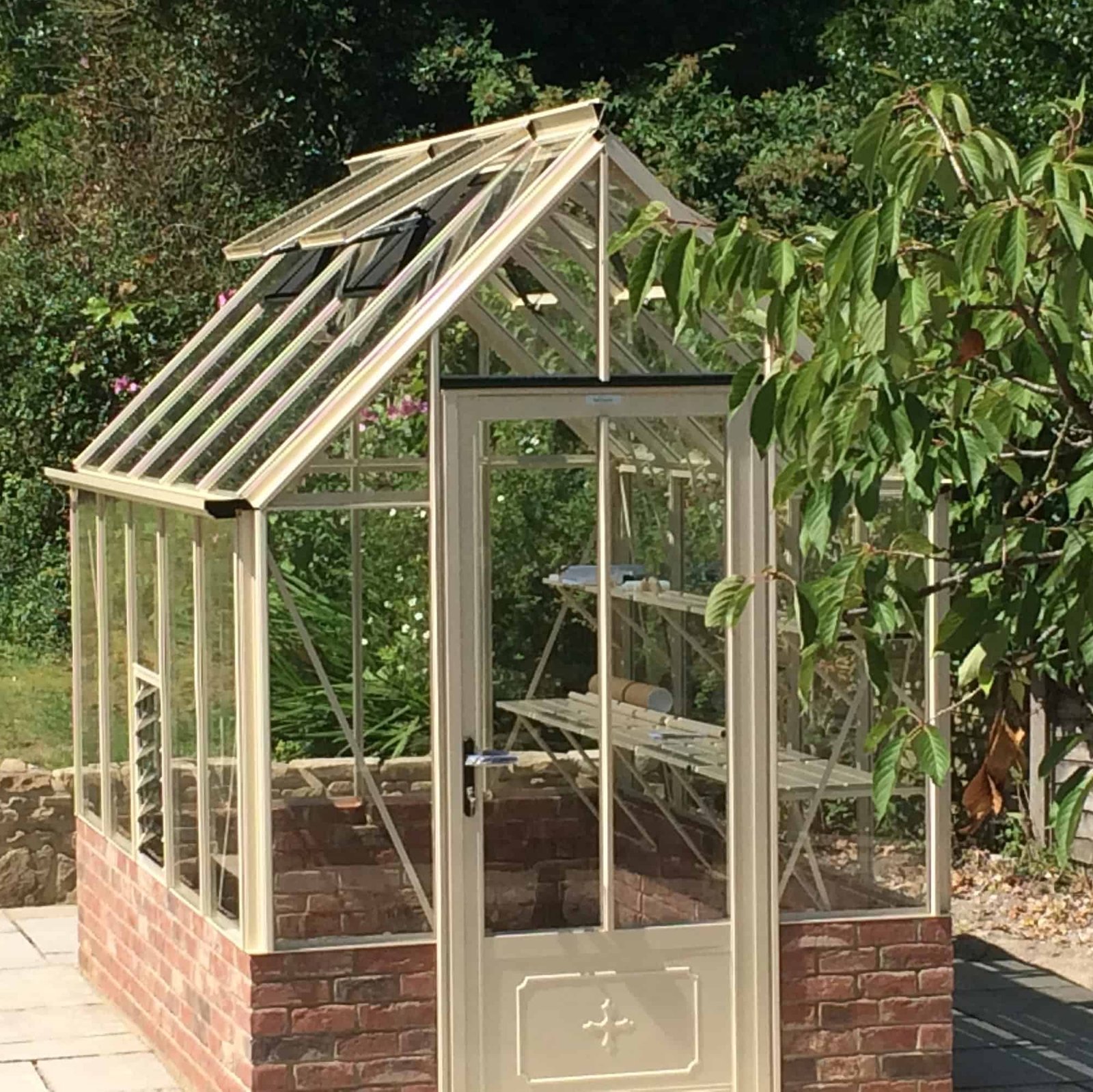This 6’6″ wide dwarf wall greenhouse is available up to 12’8″ long. The Victorian look of this model is completed by the steep roof pitch.
