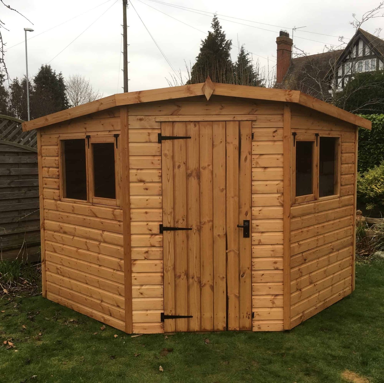 The Stanwell Corner Shed is a good quality building designed to fit into the corner of a garden, both to save space but also create an attractive feature.