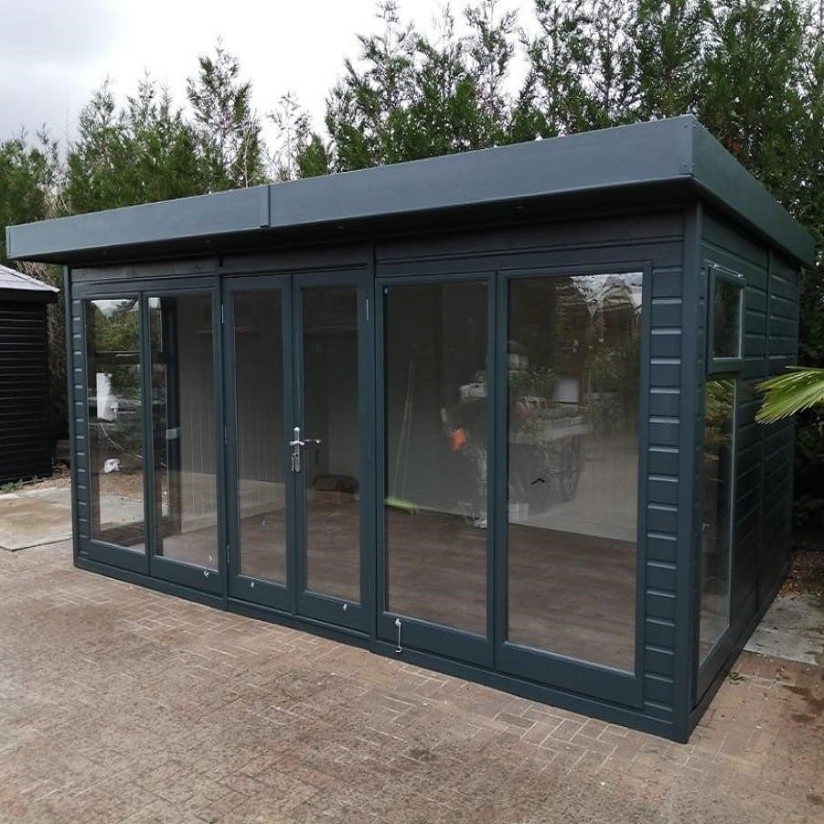 The Studio Flat is a high quality, modern looking garden room which comes double glazed as standard and can then be upgraded either by us, or yourself to be painted, insulated and with many other options such as laminate floors to turn it into a fully finished, all year use building.