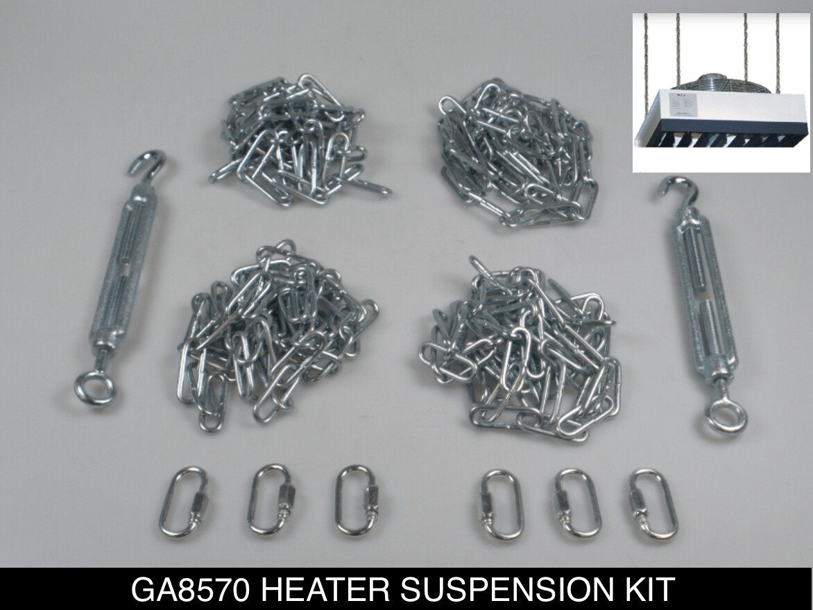 They are provided with a thermostat which switches the fan on when the temperature under the ceiling gets too high. Even when the heater is not in operation, the WCU will ensure that warm air is distributed instead of accumulating under the ceiling. The louvres of the grill are adjustable, enabling you to direct the air flow. With a 5-steps switch the user can set the speed of the fan motor. This also has the benefit of reducing noise level if required. Suspension of the WCU is easy by a set of chains fixed through 4 eye bolts.